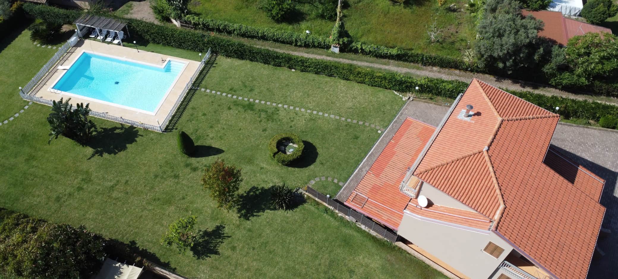 grande giardino è di circa 3000m2 e la piscina privata misura 12x6mt ed è